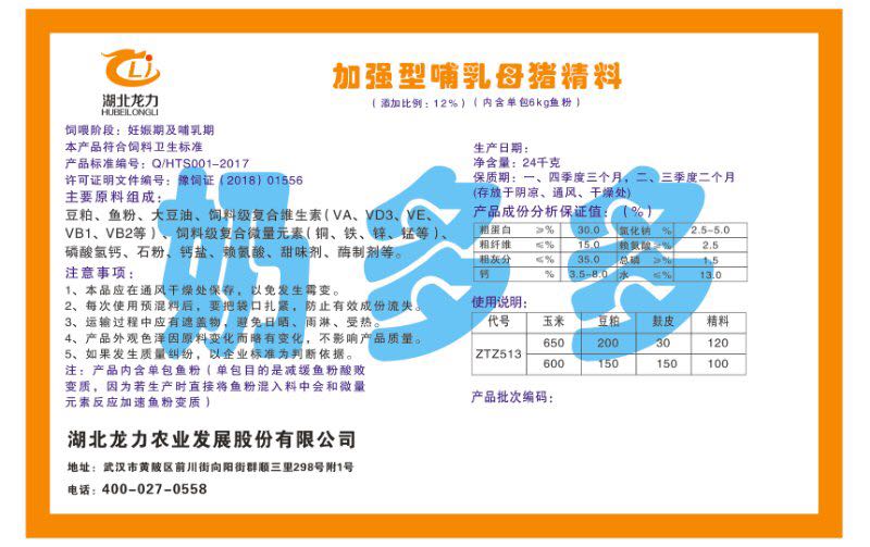 湖北龍力農業(yè)發(fā)展股份有限公司坐落于武漢市黃陂區(qū)前川街向陽街群順三里298號附1號。公司成立于2014年6月,公司自成立以來把“創(chuàng)全球最大養(yǎng)豬綜合服務”為企業(yè)愿景。致力于打造教保料品牌”作為公司發(fā)展的明確目標。公司一直致力于豬營養(yǎng)的研究和開發(fā),積極與國內外高校和科研機構合作,推廣養(yǎng)豬技術、動物營養(yǎng)新概念,向世界農牧企業(yè)學習與合作。公司采用國內先進的生產(chǎn)工藝,選擇高精度電子配料秤,高均勻度、無殘留混合機等先進設備....